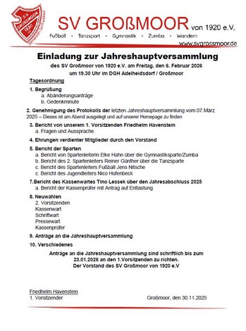 des SV Großmoor von 1920 e.V. am Freitag, den 6. Februar 2026
